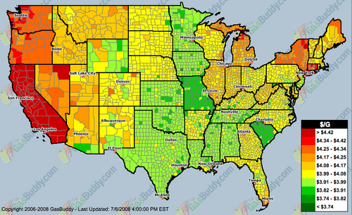 A heat map visualization via Gas Buddy