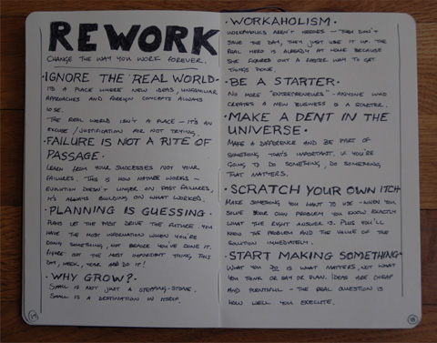 Rework is a really smart business book written by the crew from 37signals. If you haven’t checked it out, you must. In the meantime, Gnat Gnat has done a nice job of summarizing the highlights in this downloadable cheat sheet (pdf).
