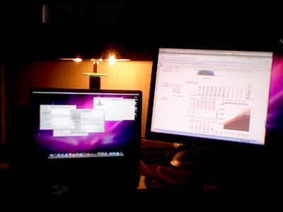 The new MacBook Pro arrived this afternoon. It’s wicked sweet! Also included is a 24″ display screen for Tweetdeck (jus’ kiddin’). The additional display screen helps with the running various tools while editing multitrack audio files.