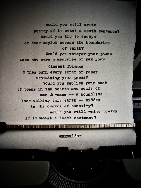 One of the last poems I wrote in April begins: ‘Would you still write / poetry if it meant a death sentence?’ It’s a bold question. Will you have a bold answer?