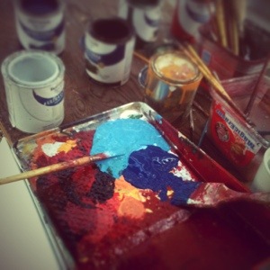 The office. Outdoors. Clear skies. For the last couple weeks I’ve been contracted to paint… well, I cannot disclose what I paint at this point. Not where. But it is a beautiful day to paint some art.
