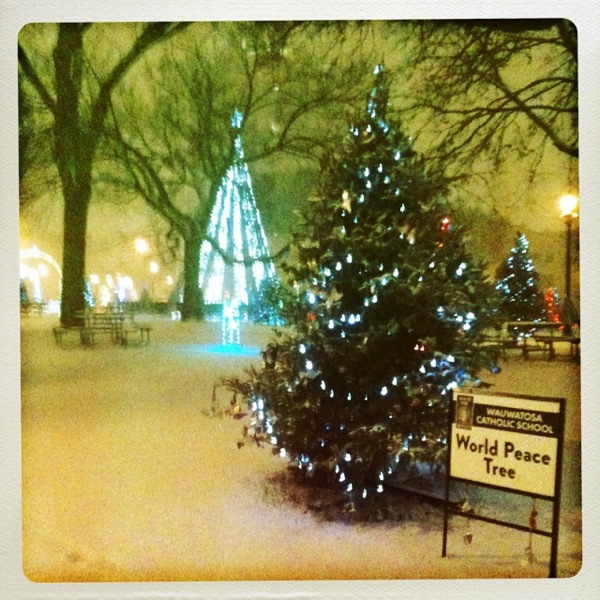 When I saw Christmas decorations and trees begin to populate Milwaukee’s Cathedral Square Park as early as November 1st, I thought, Is it that time of year already? Unbelievable. With this weekend’s snowfall, the Cathedral Square Park’s decorated Christmas trees looks particularly Decemberish.