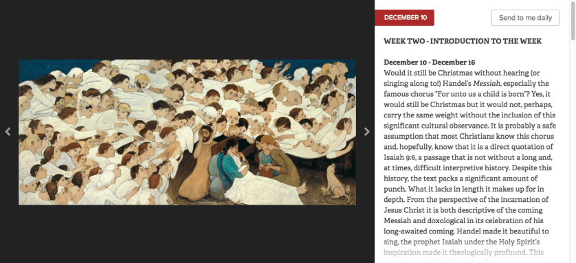 And yet another reader pointed me in the direction of Biola University’s Center for Christianity, Culture, and the Arts (CCCA) The Advent Project.[4] I truly enjoy CCCA’s Advent project as it includes art, literature, music and video.