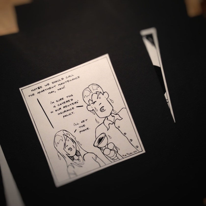 Each portfolio sample was mounted on black core matboard with spray adhesive. It was not that I did not own a classic black leather portfolio case with two handles and black filler pages and acetate covers. I did — and still do. But I remember being advised by someone in an ad agency to present work on boards. That way a client may spread the design samples out on a conference room table for a better examination.