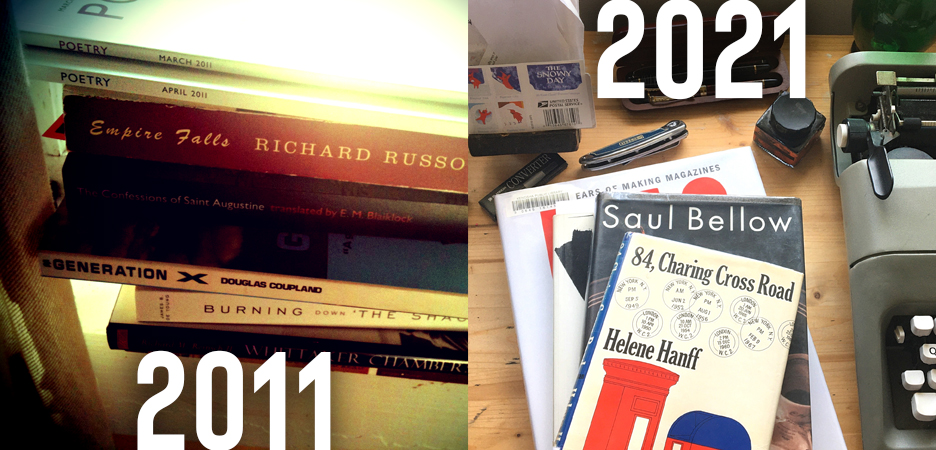 Ten years ago I published this photo of a nightstand stack of books. I looked at the photo and wondered what changes occurred in my reading habits or tastes during the last ten years. Then I asked, what is on my desk today? After some thought, I wrote a blog post. Or rather an essay regarding my observation. But it was long.