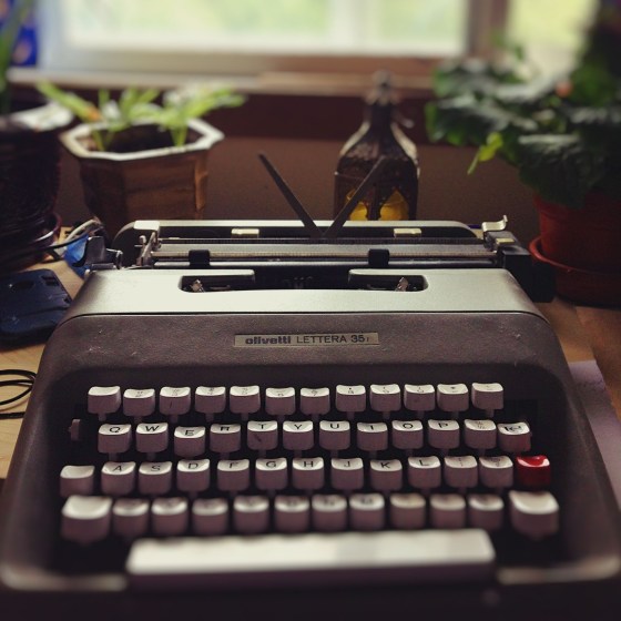 Last year I built a desk from salvaged materials. The idea was to create a retreat by the east window. Books, Boston ferns, dwarf palms, pens, paper and a manual typewriter populate the desktop. Mostly. A smart phone routinely finds its way to the desk. And a laptop computer. Vigilantly I try to maintain low-tech/no-tech policy with the desk by the window.