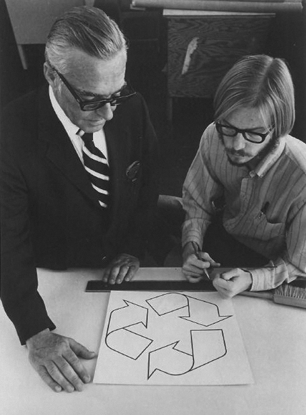 Gary Anderson (right), creator of the recycling symbol, 1970.