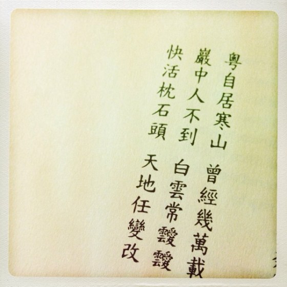 During the last few years, I find my writings turning toward dialogues with these poets. Here is a poem from Han Shan, a Taoist/Buddhist hermit, as translated by Red Pine:
